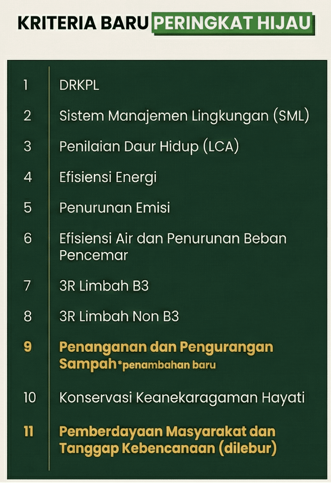 • Peringkat HIJAU diberikan untuk perusahaan yang sudah melakukan pengelolaanlingkungan melebihi persyaratan dalam peraturan dengan melaksanakan sistempengelolaan lingkungan, pemanfaatan sumber daya secara efisien, dan pelaksanakantanggung jawab sosial perusahaan secara konsisten.