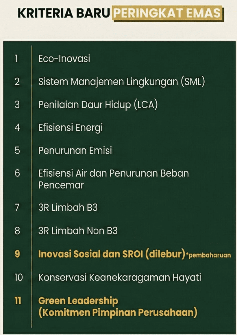 Emas: Perusahaan telah konsisten melakukan praktik keunggulan lingkungan, menjaga etika bisnis, dan bertanggung jawab terhadap masyarakat.